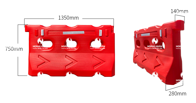 Dải phân cách nhựa di động được làm bằng nhựa HDPE màu đỏ rỗng bên trong chứa nước hoặc cát, dải phân cách di động dễ dàng di chuyển khi cần thiết.