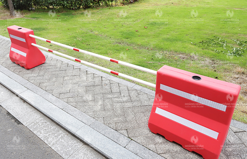 Dải phân cách di động được làm bằng nhựa HDPE màu đỏ rỗng bên trong chứa nước hoặc cát, dải phân cách di động dễ dàng di chuyển khi cần thiết.