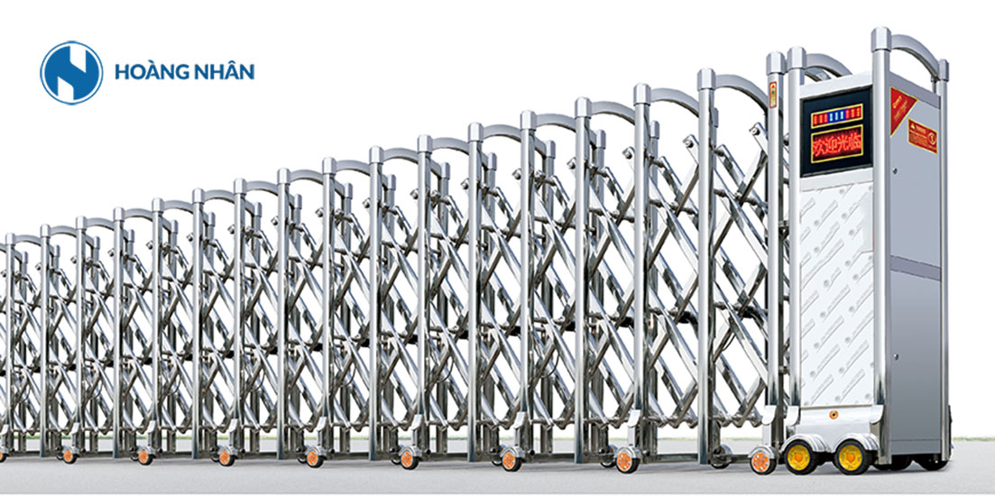 Mẫu cổng xếp inox 304 model HN 02 vật liệu nhập khẩu 100%, motor điện cổng xếp tiết kiệm điện năng, bền bỉ.