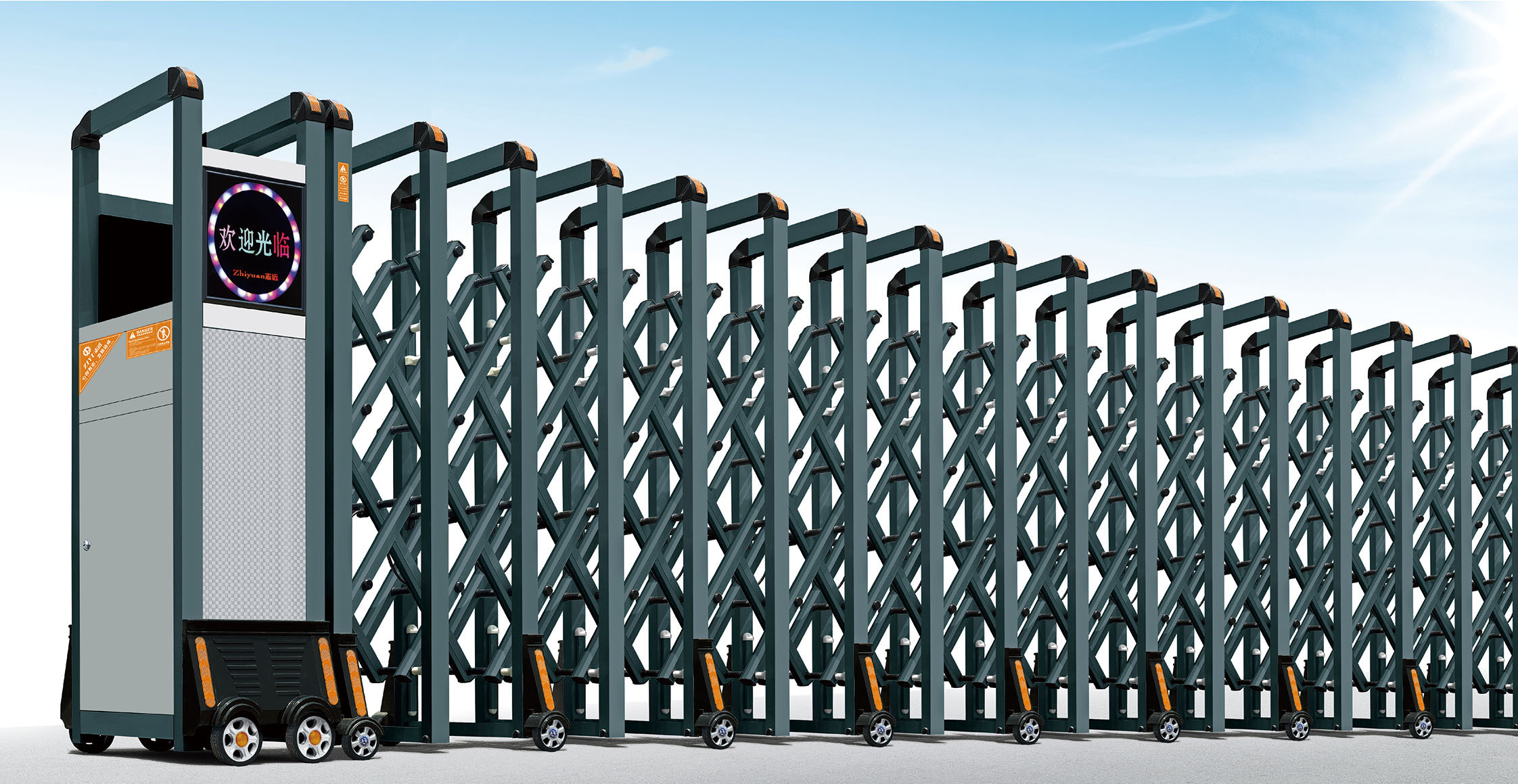 Mẫu cổng xếp chủ đầu tư lựa chọn thuộc vật liệu hợp kim nhôm sơn tĩnh điện màu xám tro