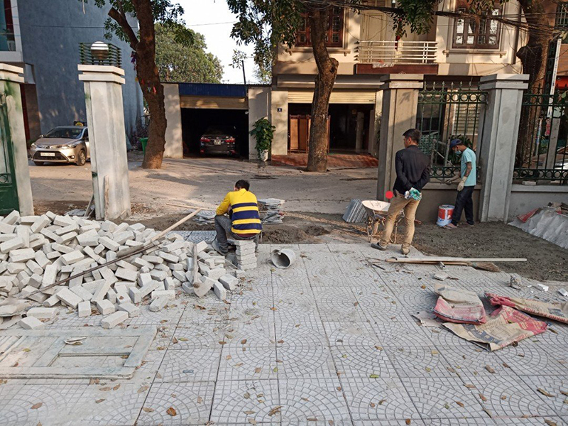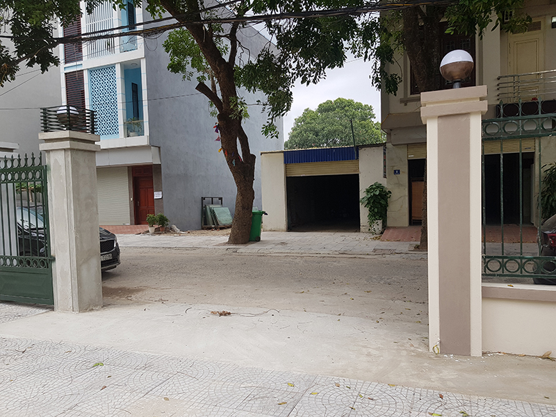 Mặt bằng cổng sau khi thi công hoàn thiện để phục vụ lắp đặt cổng xếp inox