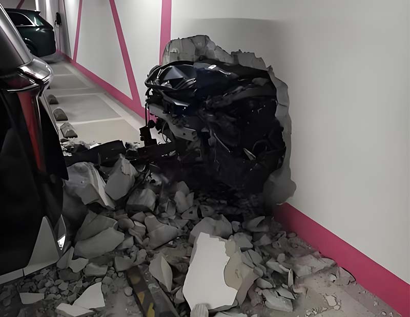 [Ảnh 1: Hình ảnh chân tường bị hư hỏng do va đập]