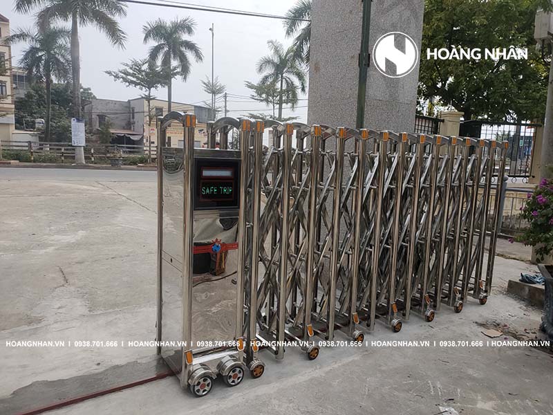 - Cổng xếp inox 304, chiều cao 1.6m.